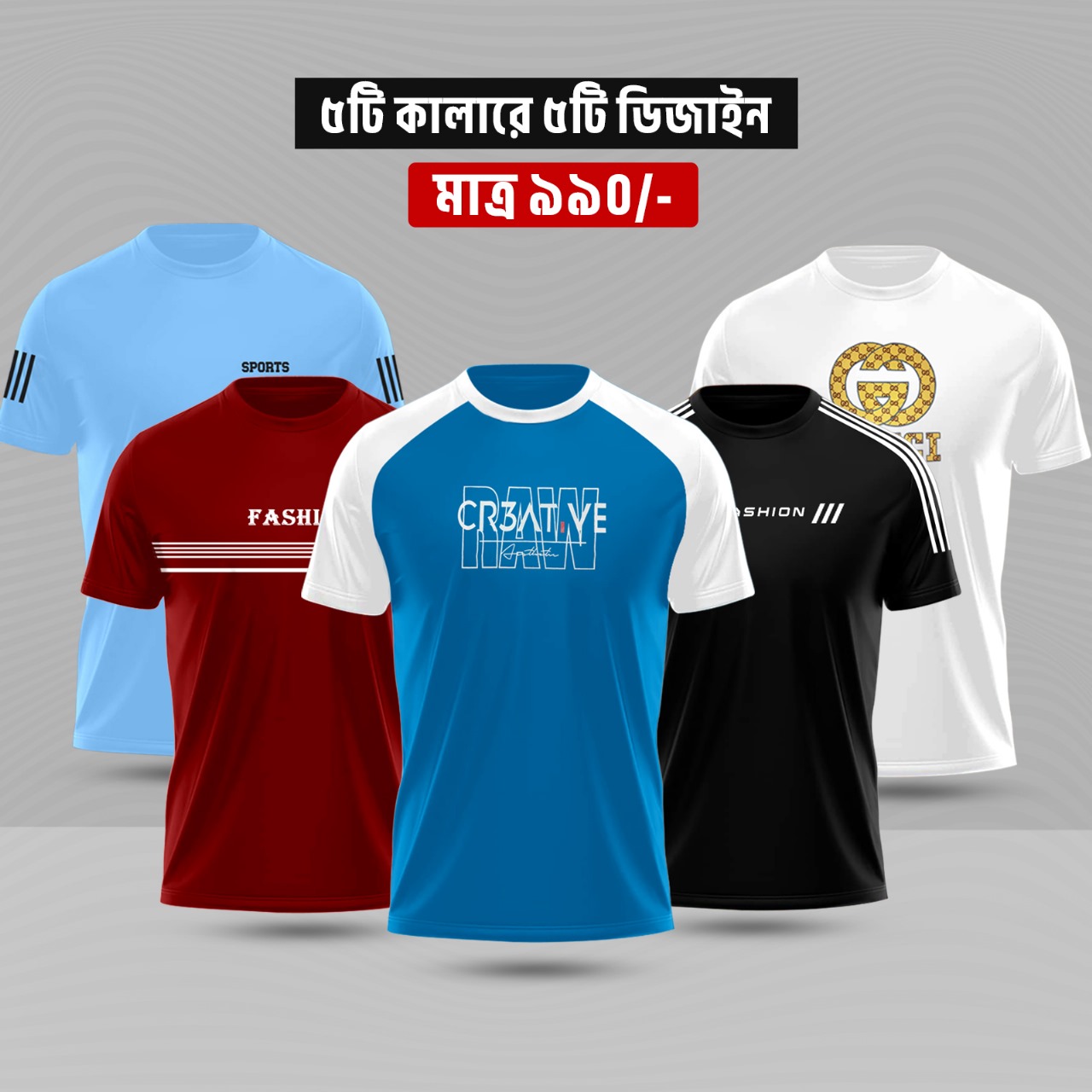 ৫ পিস পি.পি ফ্যাব্রিক এর টি-শার্ট কোম্ব সেট ৯৯০ টাকা মাত্র।